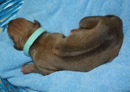 | NEWBORN EXAM Show ridge, white tip on a few toes, no kinked tail, no cleft palate and no dermoid detected. |
