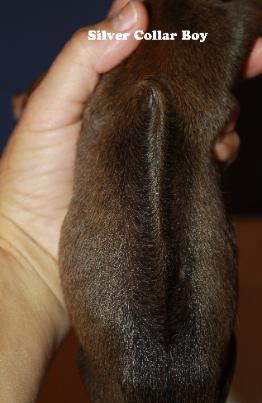 | NEWBORN EXAM Extra whorls on lower ridge, white tips to some toes, no kinked tail, no cleft palate and no dermoid detected. |