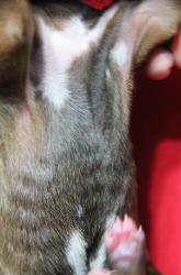 | NEWBORN EXAM Show ridge, white tip on a few toes, no kinked tail, no cleft palate and no dermoid detected. |
